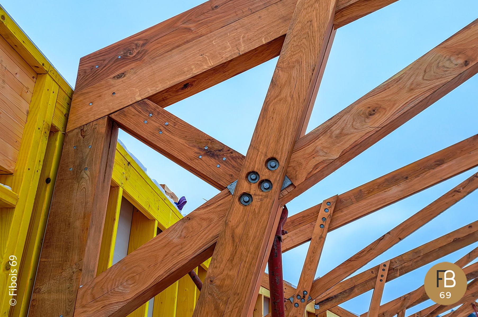 - Chêne pour le structure des portiques et la charpente (en savoir plus sur le chêne)